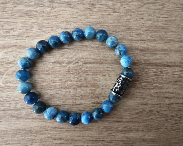 Ajoutez une touche de style raffiné à votre look avec notre bracelet en apatite bleue, agrémenté d'une breloque en acier inoxydable argenté. Fabriqué avec des pierres naturelles de qualité supérieure, ce bracelet est à la fois élégant et bénéfique pour votre bien-être.