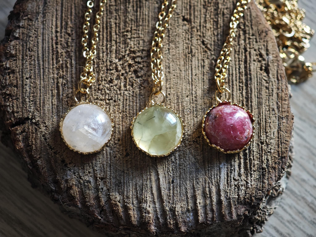 Pierre naturelle de 12 mm sertie dans un acier inoxydable doré 316L, un bijou de haute qualité.