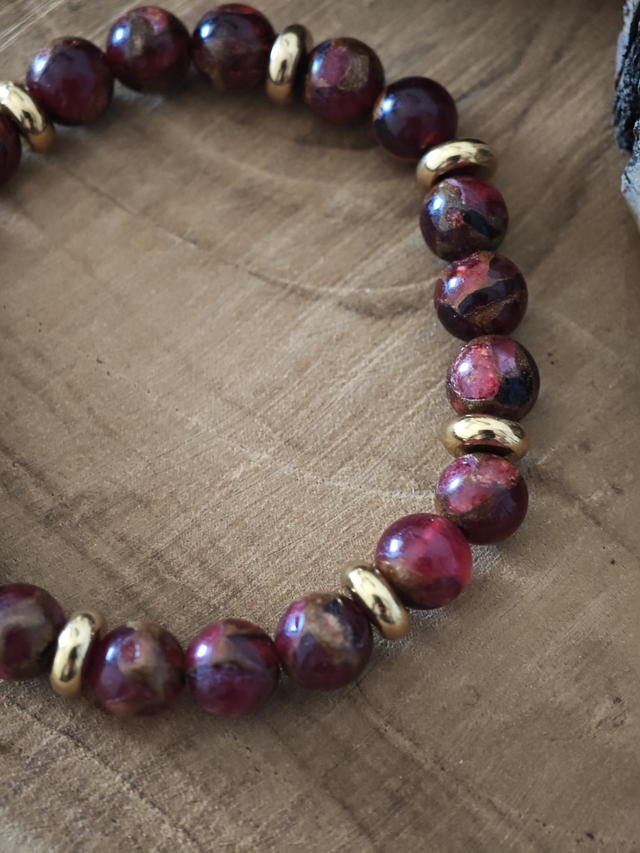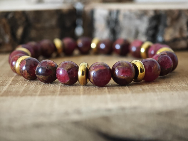 Bracelet en Jaspe Rouge Doré – 8 mm