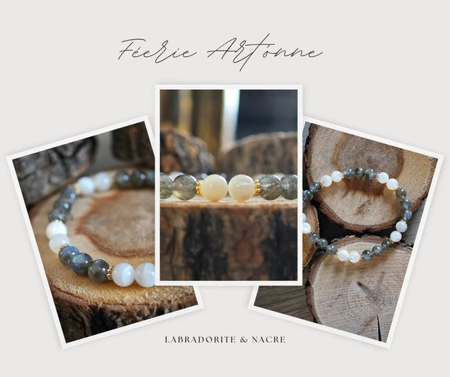 J'ai créé ce bracelet pour celles qui aiment la simplicité et l'élégance discrète. La labradorite, avec ses jeux de lumière uniques, se marie parfaitement à la nacre AAA, qui est d'une qualité vraiment exceptionnelle (Grade AAA). La nacre, avec ses reflets lumineux, apporte un éclat doux mais captivant, et la labradorite lui donne toute sa profondeur.