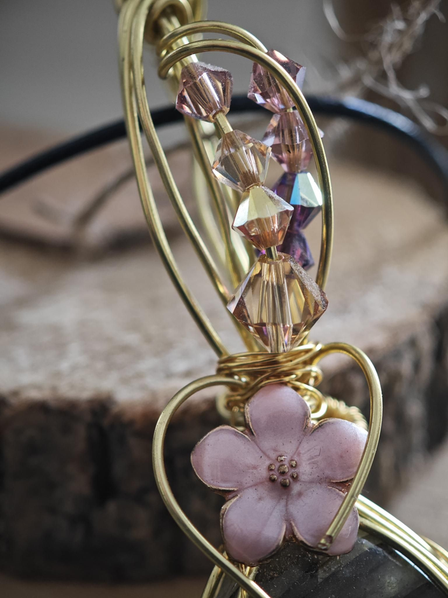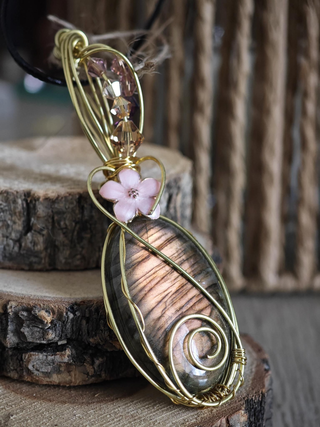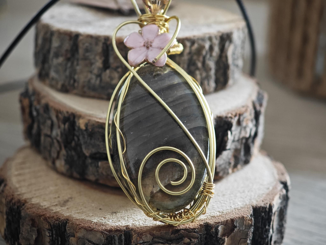 Pendentif d'environ 9 cm serti avec d'une magnifique labradorite.