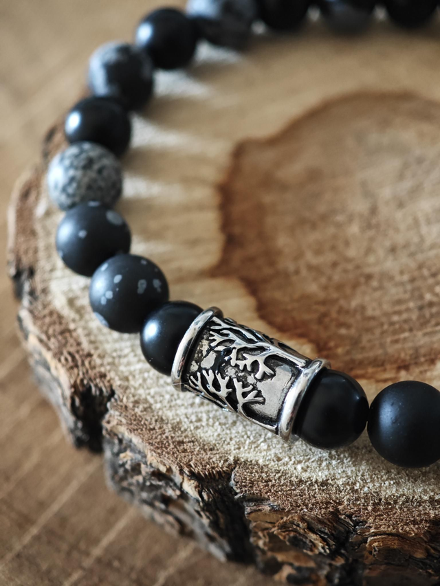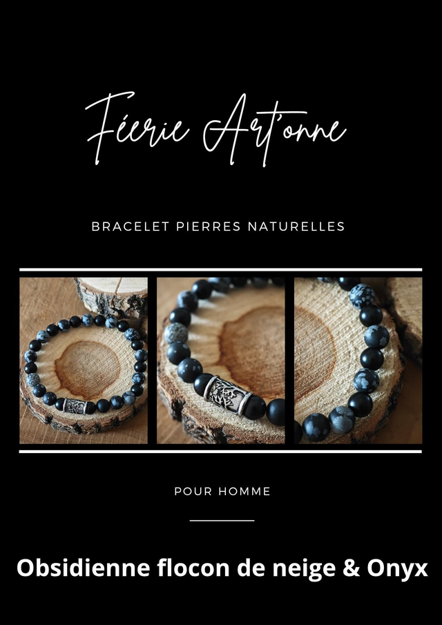 Bracelet Homme en Obsidienne flocon de neige et Onyx