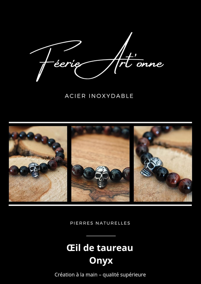 Ce bracelet allie la puissance protectrice de l’Onyx et la vitalité de l’Œil de Taureau pour un style affirmé et équilibré.