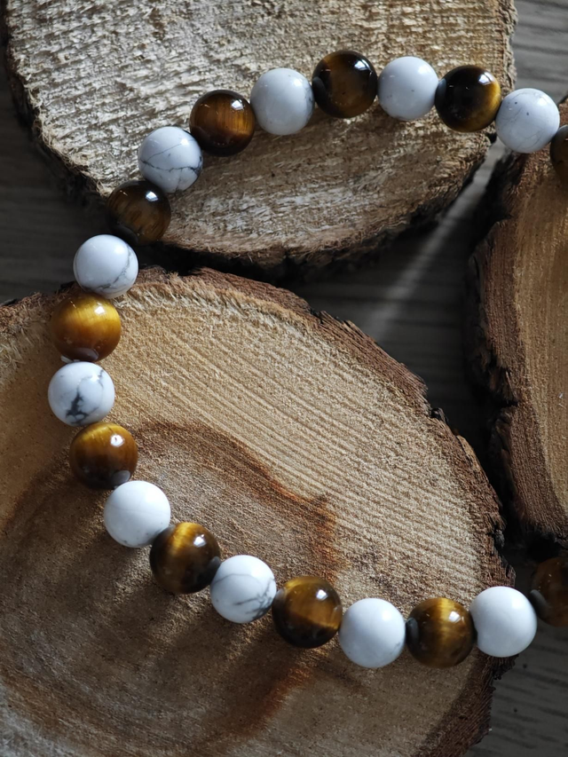 Ensemble : Ce bracelet combine les vertus de l'Œil de Tigre et de la Howlite pour apaiser les reflux gastriques, réduire le stress et favoriser une digestion harmonieuse.