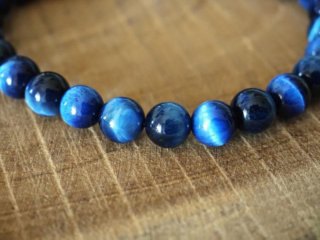 Perles : 8 mm – œil de tigre bleu teinté