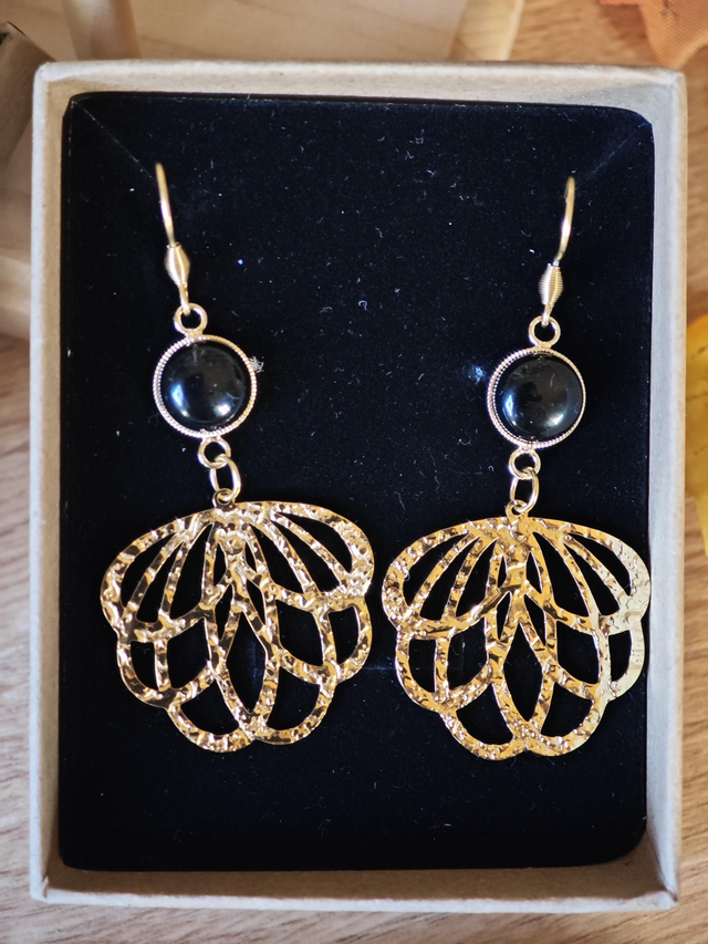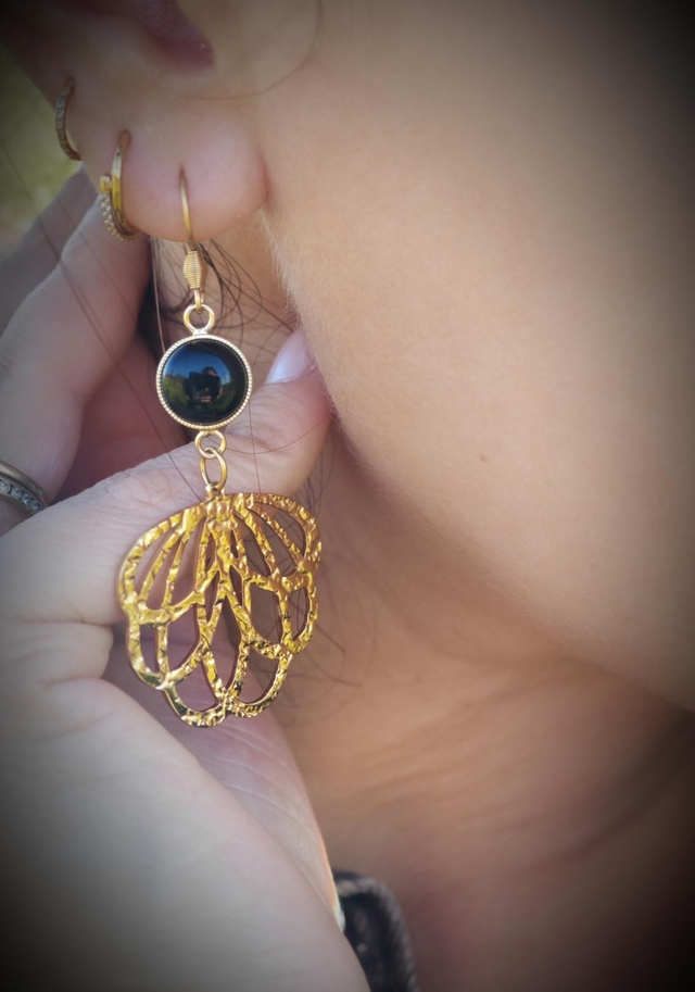 Ces boucles d'oreilles en onyx, avec leurs pierres de 10 mm, captent la profondeur du noir.