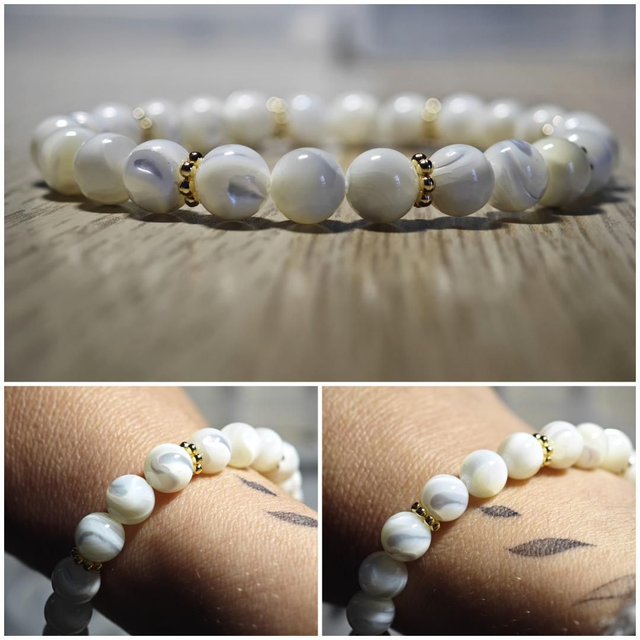 Bracelet en Nacre et Acier Inoxydable Doré – Perles de 8 mm décliné en 6 mm