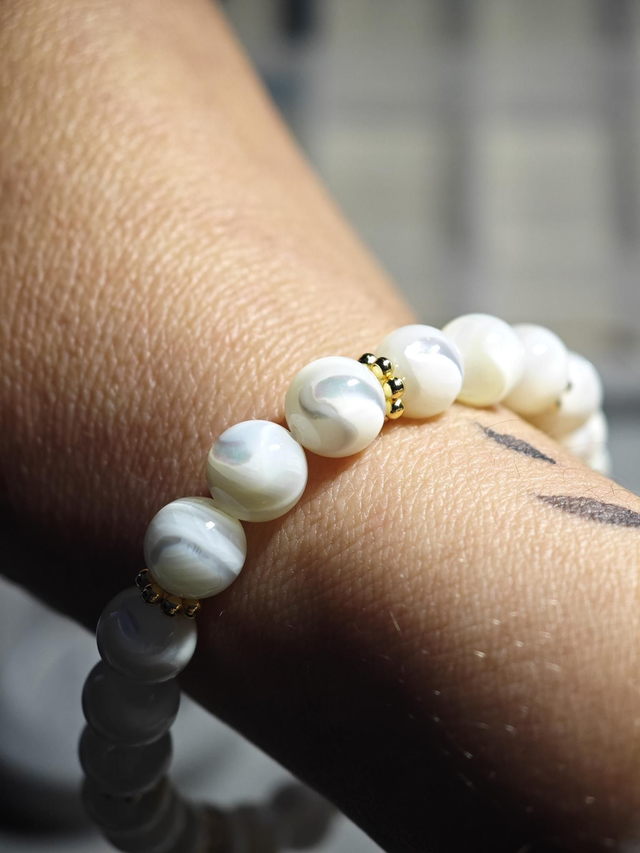 Favorise l'équilibre : La nacre est réputée pour harmoniser les énergies et encourager une vision plus positive de la vie.