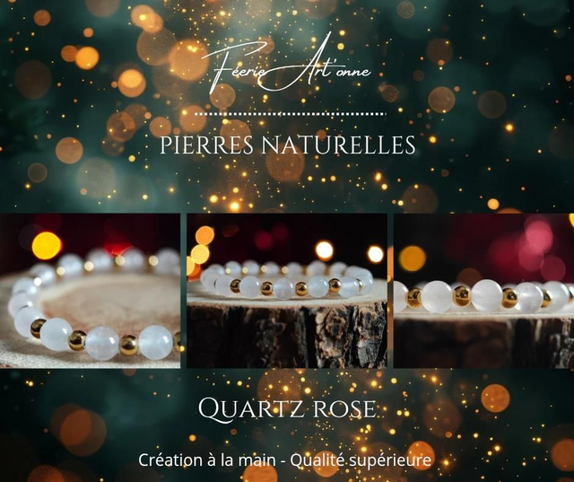 Bracelet en quartz rose 6 mm avec perles en acier inoxydable doré 316L. Un modèle délicat, plein de douceur, au rendu épuré et élégant.