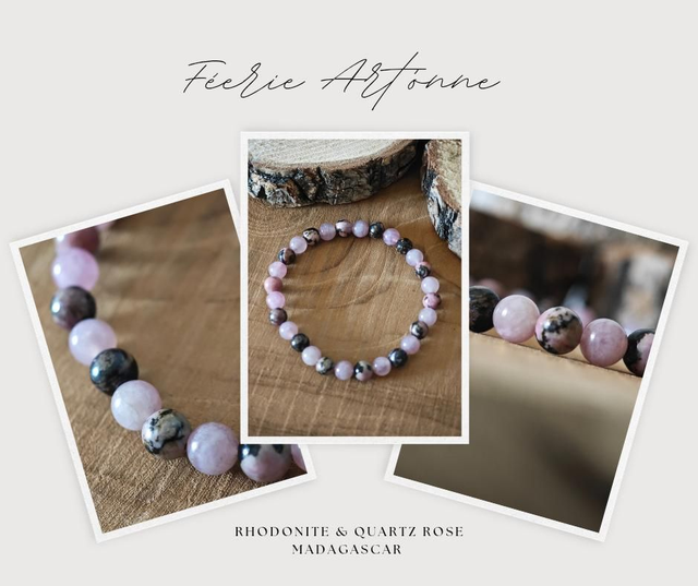 Bracelet Rhodonite & Quartz Rose de Madagascar