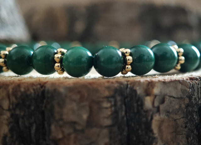 Ce bracelet en malachite naturelle du Congo (qualité AA+) est un véritable symbole de la nature. Chaque perle de 6 mm est minutieusement sélectionnée pour sa couleur profonde et sa pureté. Certifié par le Laboratoire Français de Gemmologie (LFG), ce bijou est une pièce unique, alliant beauté et bienfaits.