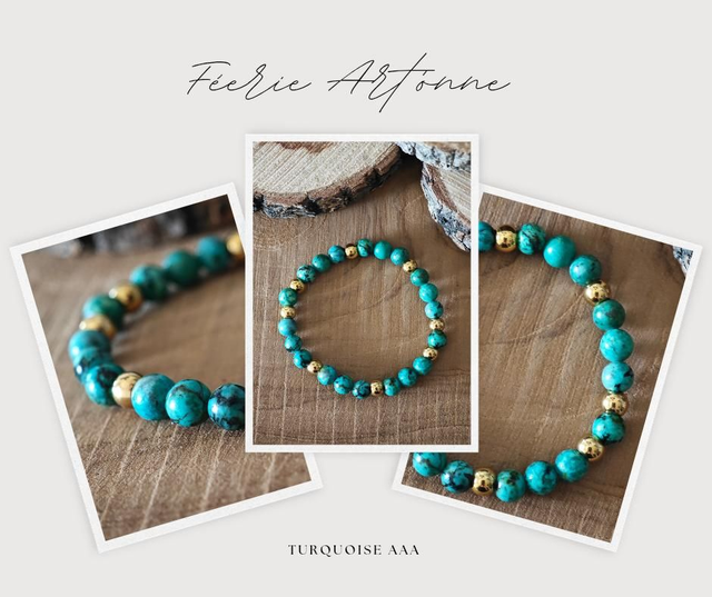 Sublime bracelet en turquoise d’Afrique AAA 6 mm Sélectionnée pour sa pureté et sa couleur intense (très haute qualité) :